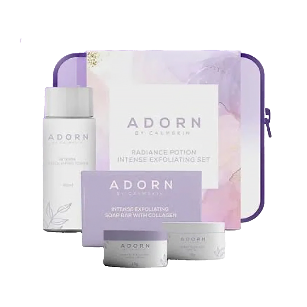 Adorn by Calmskin Radiance Potion Exfoliating Set is the only companion you'll ever need on your path to glowing skin. Reduces aging signs, dark spots, and pimple marks quickly, and effectively prevents breakouts and skin drying.