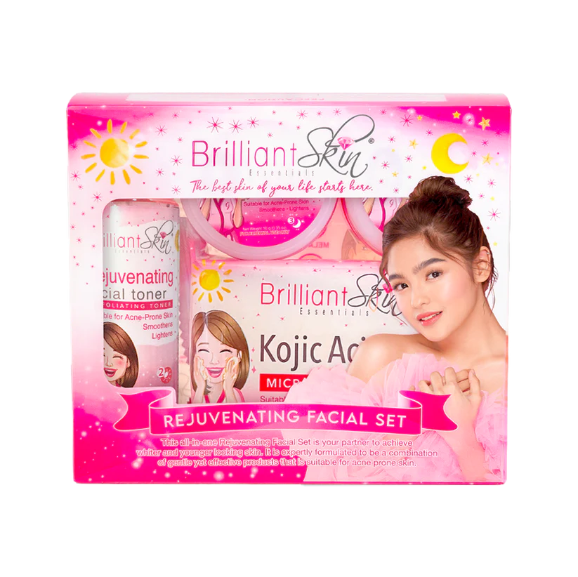 Brilliant Rejuvenating Set is combined with whitening, anti-aging, and anti-acne designed to achieve brighter and younger-looking skin. It helps to diminish imperfections by gently peeling away the skin's top layers.