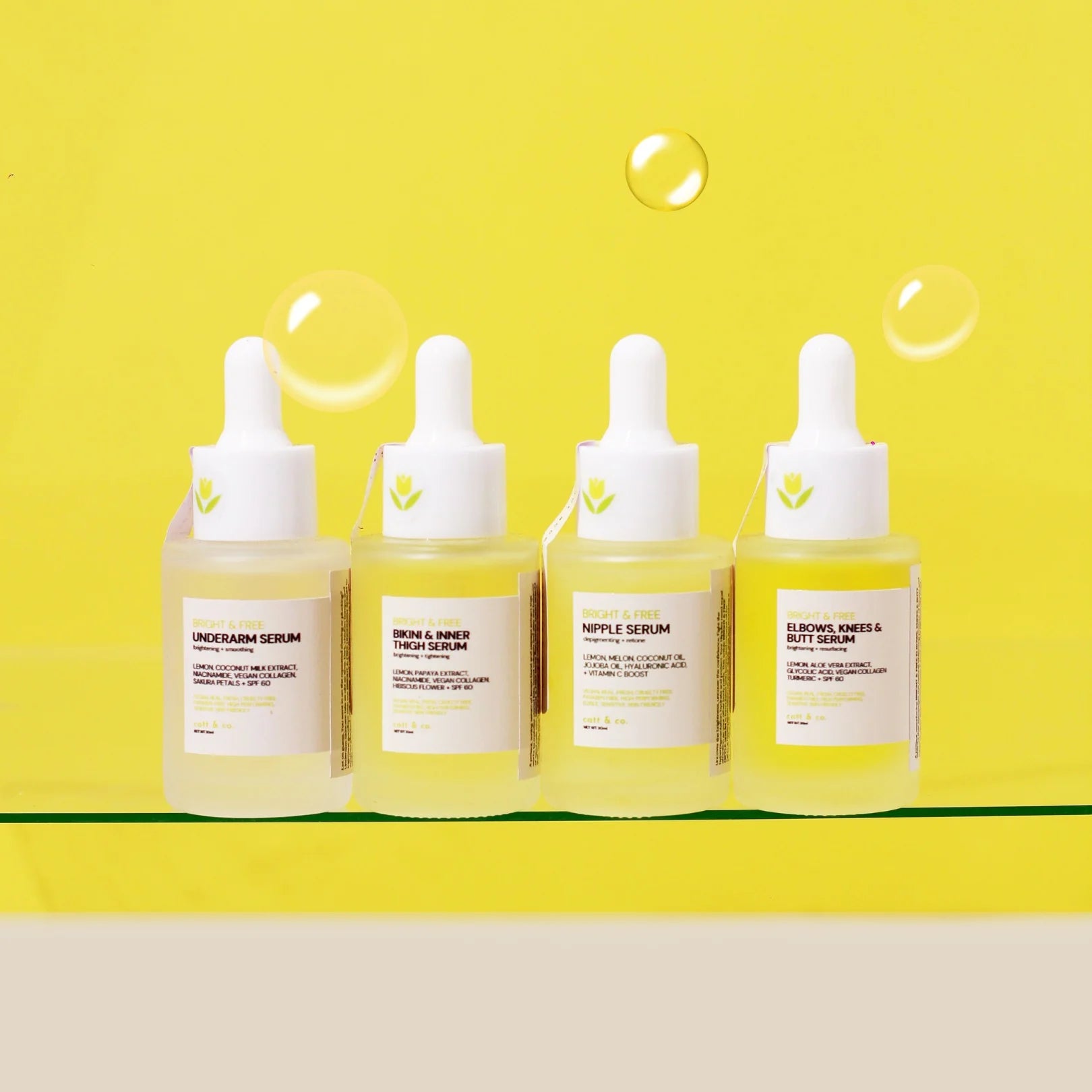 Catt & Co Bright and Free Underarm Serum is an Underarm Skincare tale as old as time. Say goodbye to dark, chicken bumps, and ingrown with our serum. It soothes, plucked-dark scarring, and calms inflammation or bumps while doing the pit work to lighten and smoothen the skin