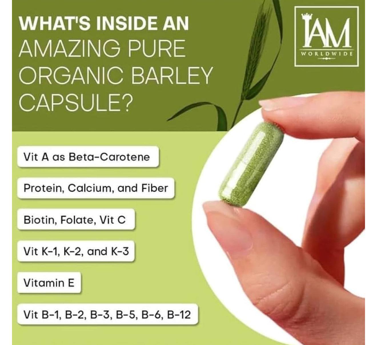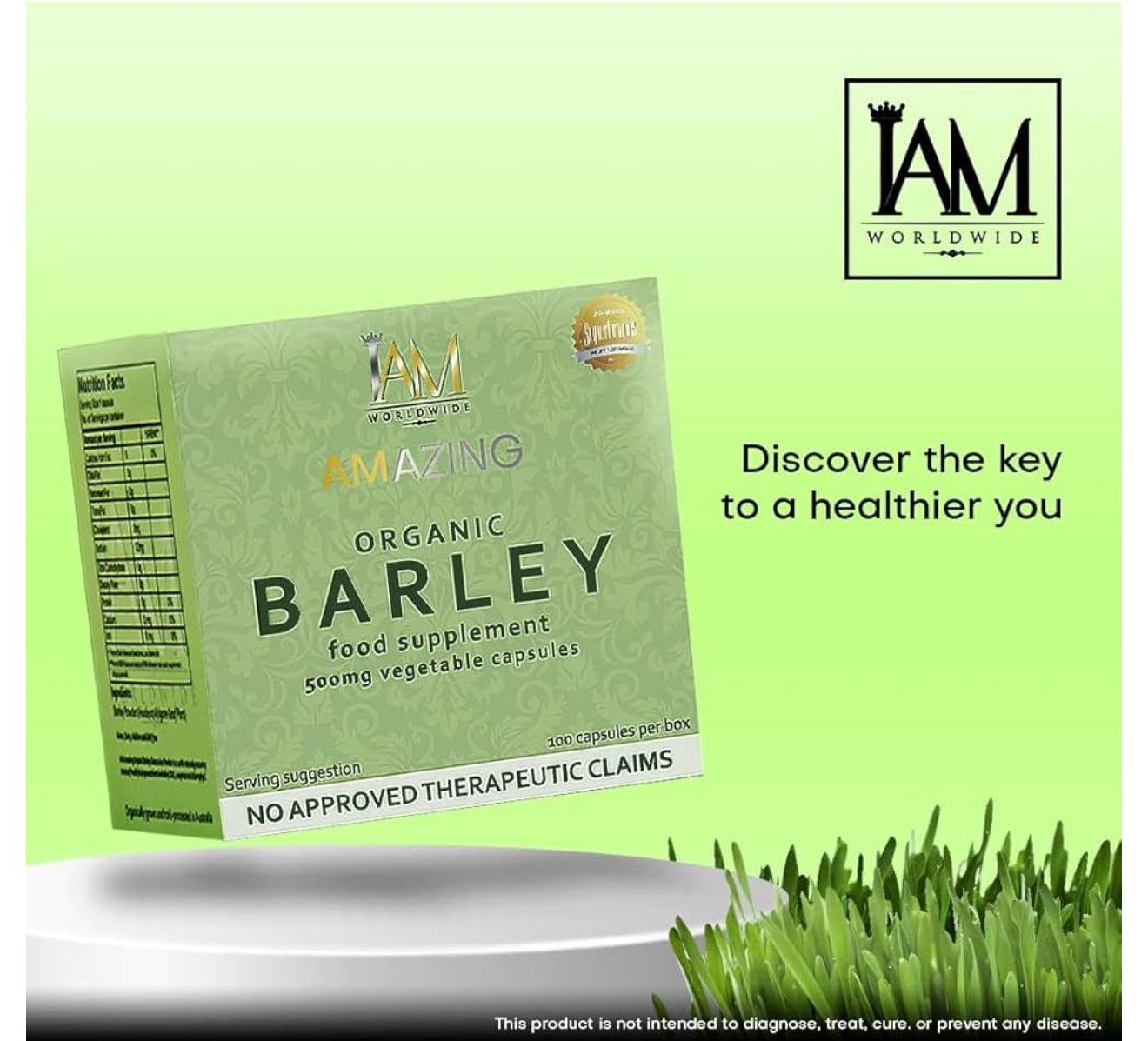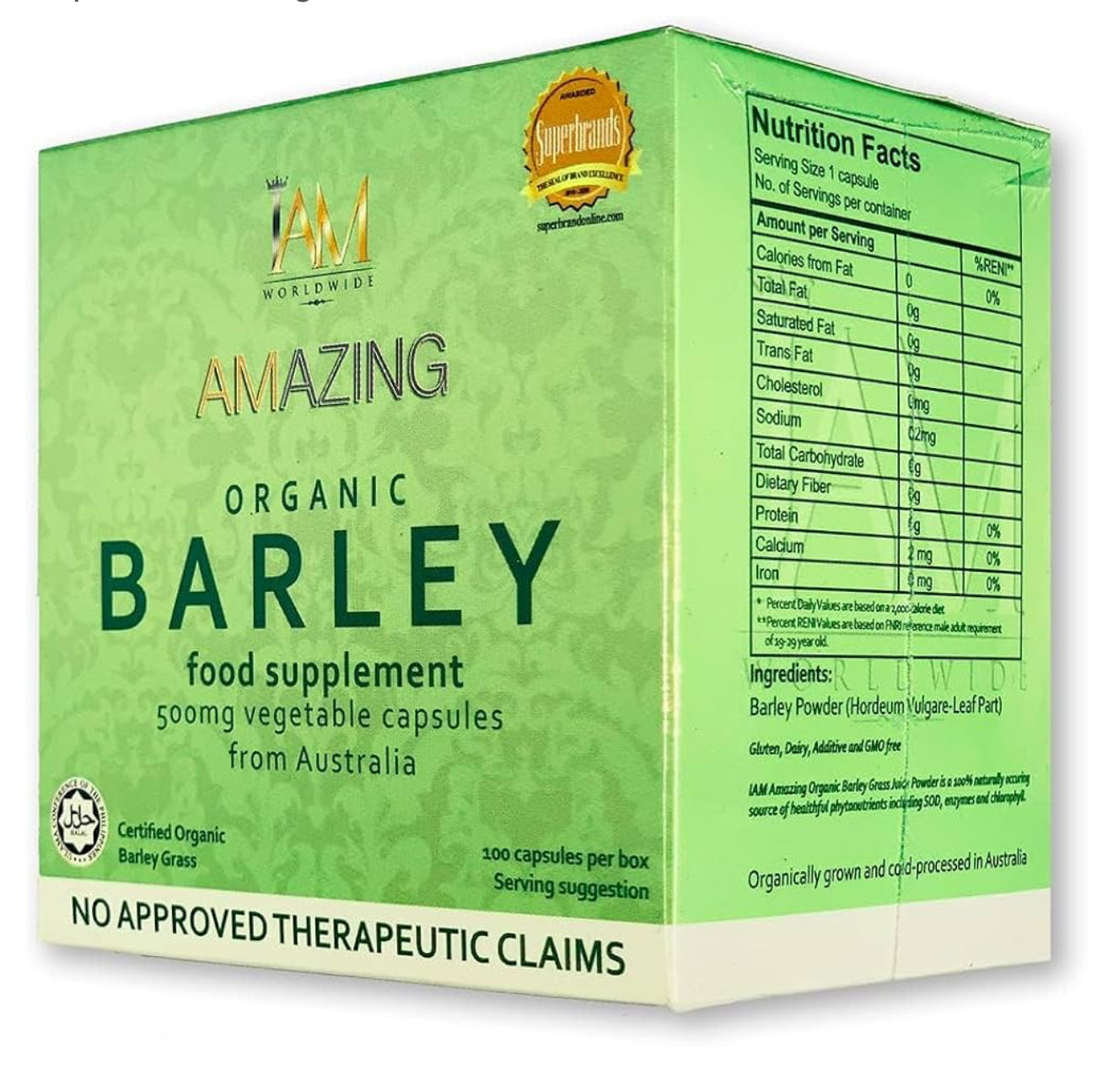 I AM Worldwide - Organic Barley Food Supplement (500mg/100capsules)