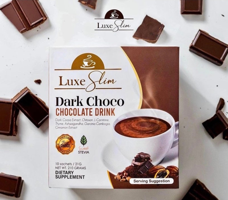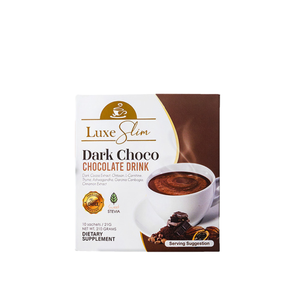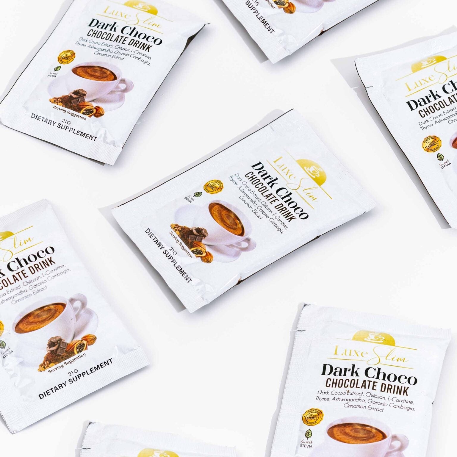 Get to know Luxe Slim Dark Choco! This drink is made with a special blend of ingredients, including dark cocoa extract, chitosan, I-carnitine, thyme, ashwagandha, garcinia cambogia, and cinnamon extract. This one is going to be a game-changer for you.